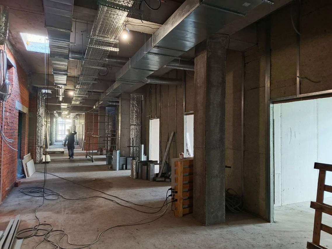 На сегодняшний день уже выполнена разводка электрического кабеля, проводятся работы по устройству фасада. На прилегающей территории ведется установка столбов для ограждения периметра, сейчас строители выкладывают бордюрный камень. Продолжается проведение черновых работ.
