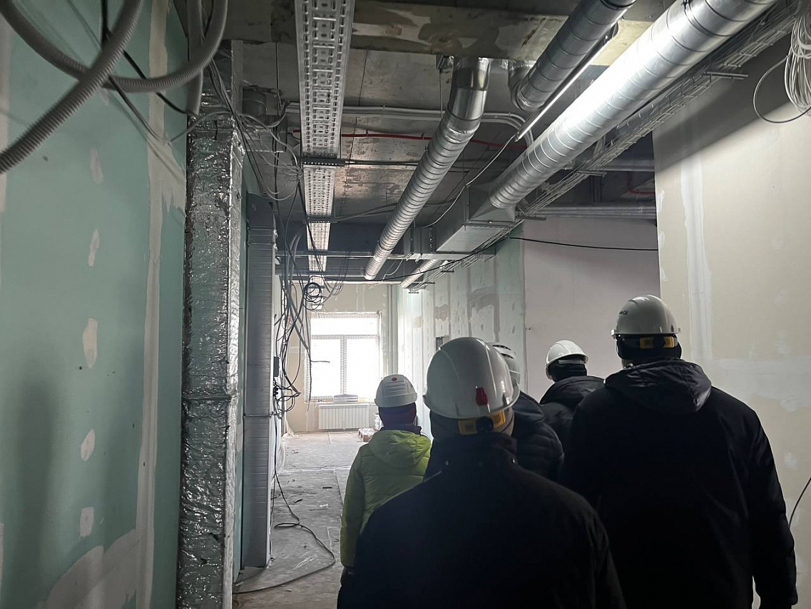 «На данный момент строительная готовность объекта составляет 68%. Сейчас выполняются работы по облицовке стен и пола плиткой, монтажу внутренних инженерных коммуникаций отопления и слаботочных сетей. Завершается монтаж мягкой кровли и проводятся работы по благоустройству территории – укладке асфальтового покрытия», — сообщил Глеб Орлов.