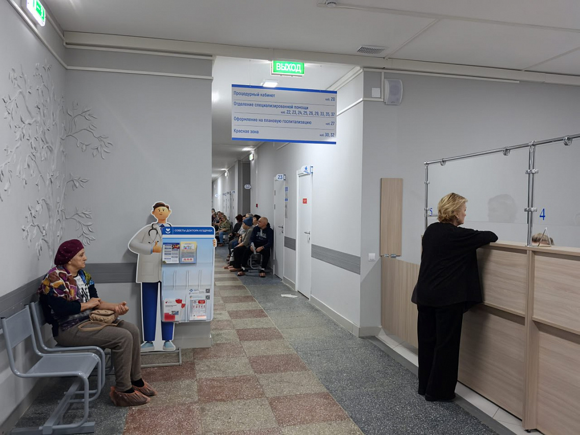 В обновленной поликлинике создана удобная система навигации. Для комфорта посетителей оборудованы зоны ожидания, для разделения потоков пациентов выделены «красная» и «зеленая» зоны.